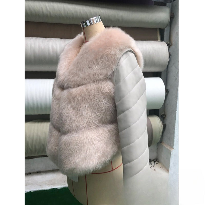 Korean Casual PU Leather Removable Sleeve Warm Coat